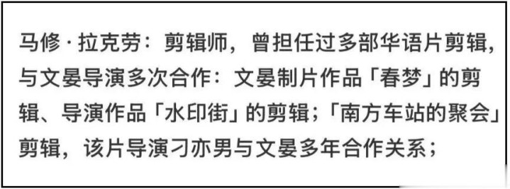 剪辑师马修也和文晏合作过很多次,比如由她担任制片的《春梦》,导演的《水印街》,马修都曾经参与剪辑,可见二人交情匪浅。如此看来,评审团里一共有五个人,但其中两个人和文晏的关系都很亲近。对此,大家都对她报以厚望,期待着她能为华人演员撕下一个奖。