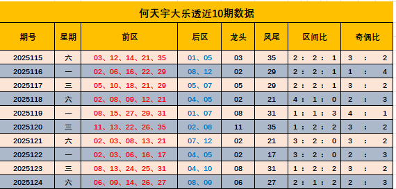 三区走势:上期区间比是2:1:2,近10期三区比为21:17:12,一区号码热度较高,综合分析本期参考区间比为1:2:2。