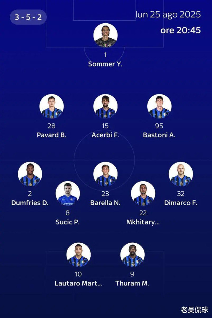 新赛季意甲首轮,列强先后亮相,表现各异,AC米兰输球,亚特兰大被升班马逼平,尤文顺利赢下首战,今晚就看国际米兰了。蓝黑军团上赛季四大皆空,主帅小因扎吉弃船去了沙特,球队的动力是个很大的疑问,还有待实战检验。