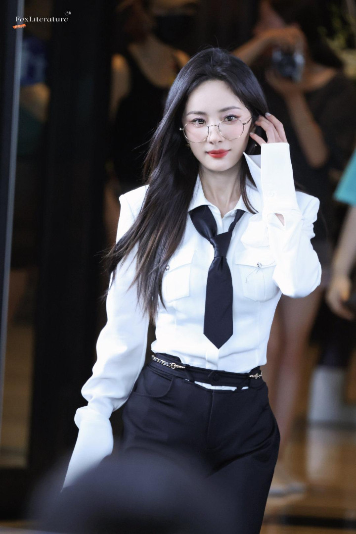 杨幂这次的学姐风造型,只能用 “服了” 来形容。白衬衫黑领带的经典搭配,被她穿出了高级感,不是那种廉价的学院风,而是 “精致学姐” 的感觉,男生看了都得说句 “绝”。