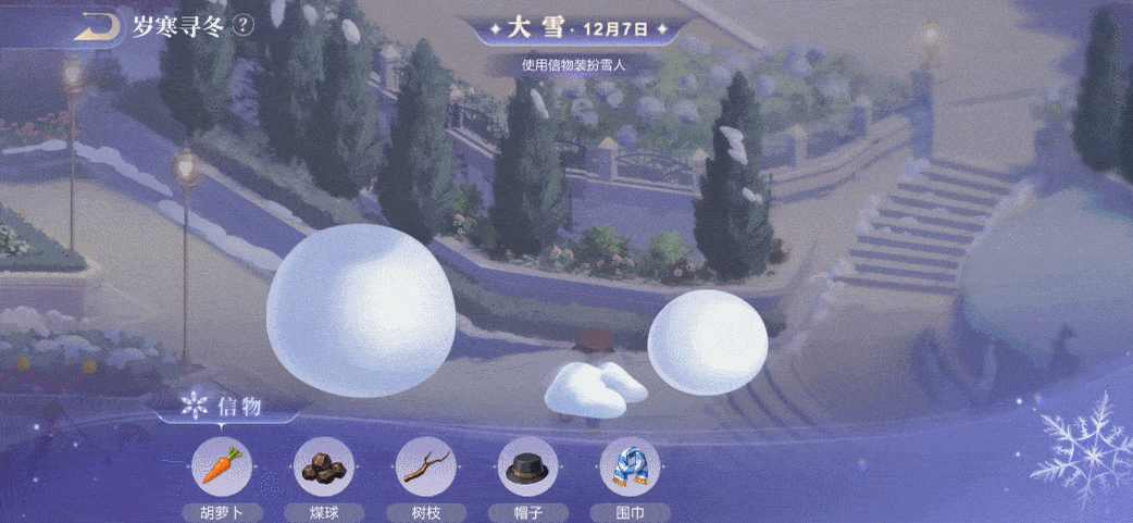 ②堆雪人小游戏所需要的信物都是生活中常见的物品~会在哪里出现呢?嘿嘿~在菜地附近哦!车手们可以在梦幻庄园菜地附近找到所需的信物!